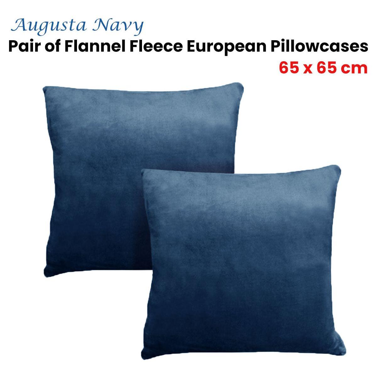 Experience the ultimate in comfort and style with this Augusta Navy Pair of Flannel Fleece European Pillowcases 65 x 65 cm by Alastairs. Perfect to add a touch of sophistication to your bedding. It features solid colour design in striking tone that will add a decorative touch and opulence to your bedroom decor. Made from quality and soft touch Polyester fabric with easy care properties.