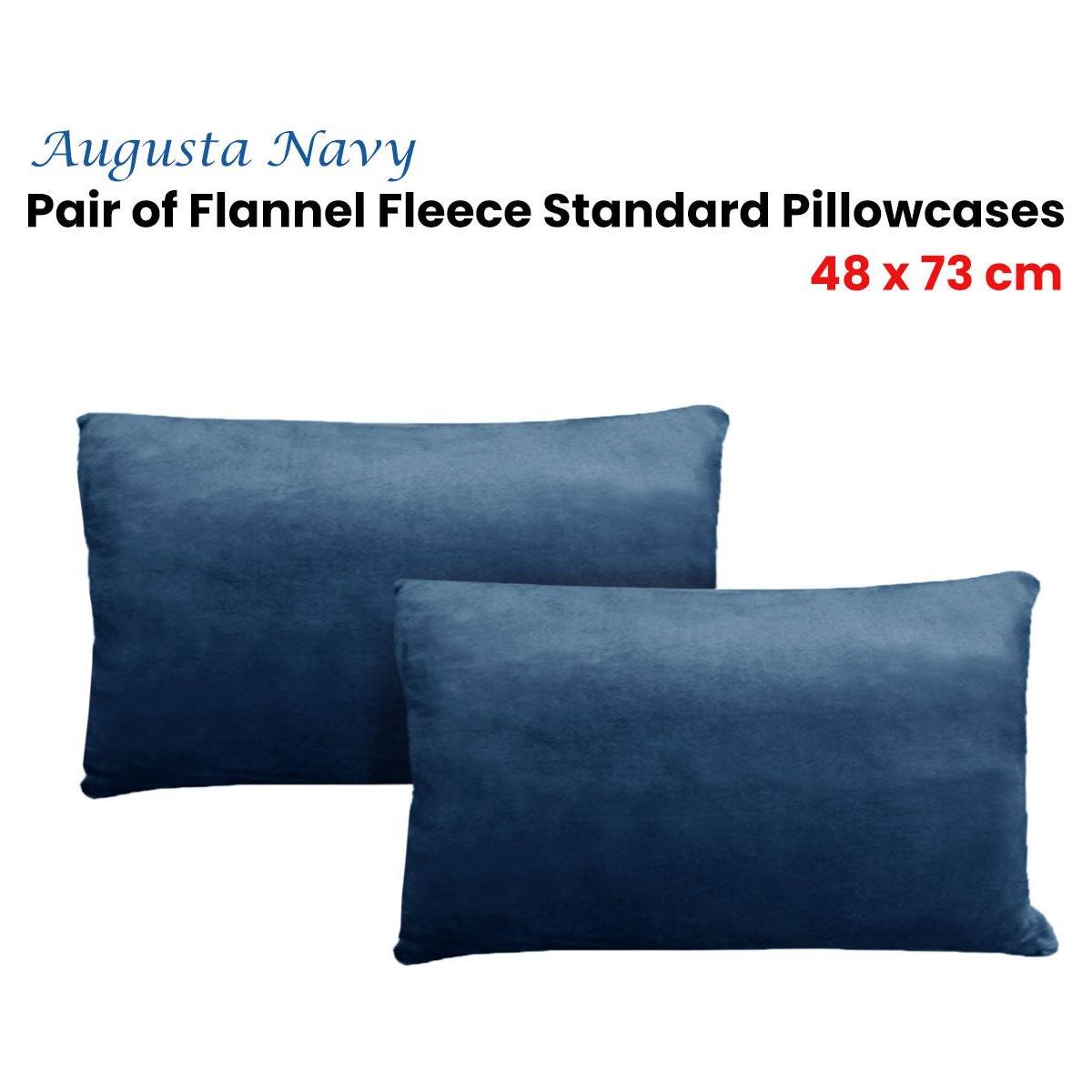 Experience ultimate comfort and cosiness with this Augusta Navy Pair of Flannel Fleece Standard Pillowcases 48 x 73 cm by Alastairs. It features solid colour design in fresh tone that will add a decorative touch and opulence to your bedroom decor. Made from quality and soft touch Polyester fabric with easy care properties.