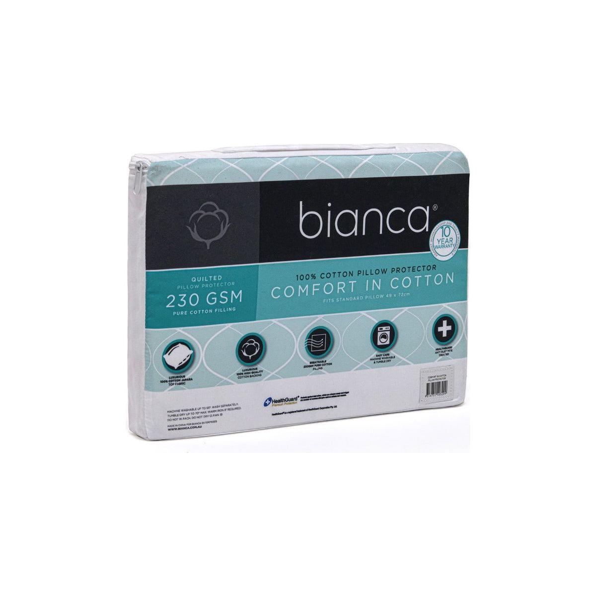 This Cotton Pillow Protector by Bianca is made from 100% cotton japara top fabric. It features 230gsm cotton filling, healthguard treated, anti dust mite & 50cm wall. Fully machine washable.