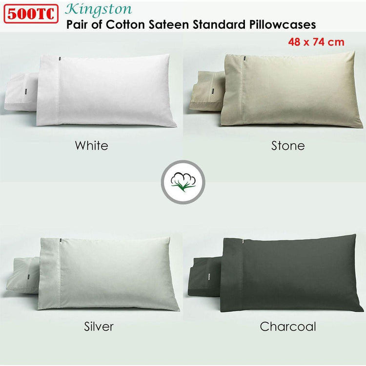 Bianca Pair of 500TC Cotton Sateen Standard Pillowcases Stone