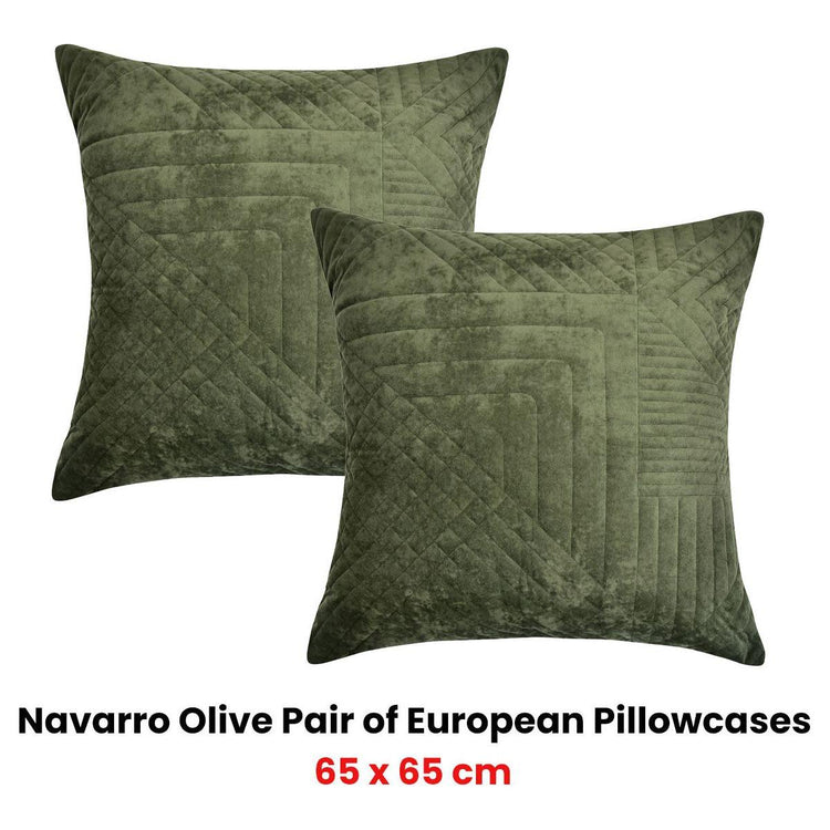 Bianca Pair of Navarro Olive European Pillowcases 65 x 65cm