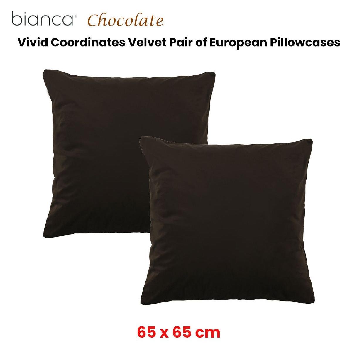 Bianca Pair of Vivid Coordinates Velvet European Pillowcases Chocolate 65 x 65cm