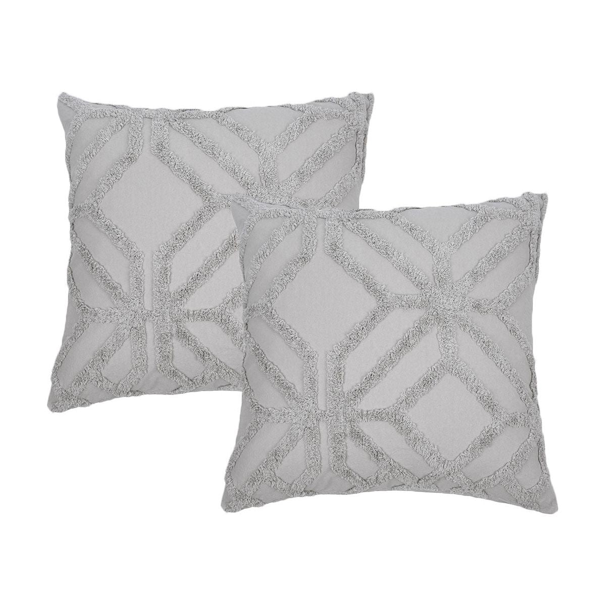 Pair of Willow Silver European Pillowcases by Bianca features a super soft cotton chenille fabric, smartly finished with a tailored edge. A stunning geometric pattern that requires no ironing, this easy-care coverlet is one that you will love.