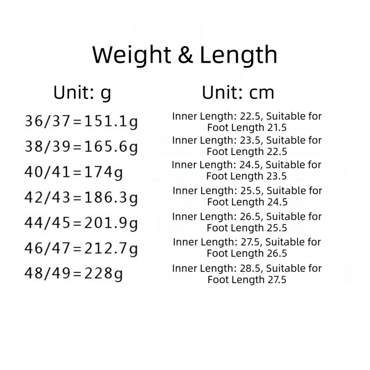 To ensure the best fit, please measure your foot length accurately and refer to the Suitable Foot Length column in the chart below.