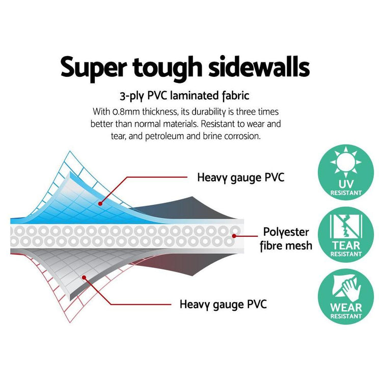 The Bestway Kids Swimming Pool features rust-resistant steel frames, heavy-duty PVC and polyester 3-ply side walls and enhanced corner connectors to keep the entire ensemble firmly in place. The round pool has a water capacity of 580 litres. A built-in flow control drain valve can be attached to a garden hose for hassle-free filling or draining. A repair kit is also included.