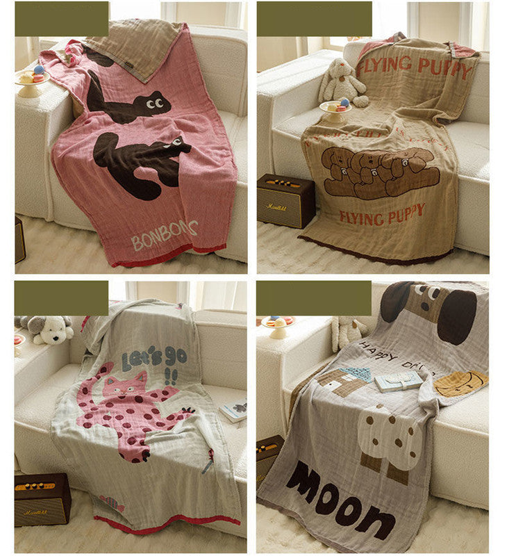 Brown Cherry Pattern Soft and Absorbent 4-Layer Cotton Bath Towel for Adults and Children | Cartoon Design | 80*160 cm | Perfect for Bathing and Lounging
