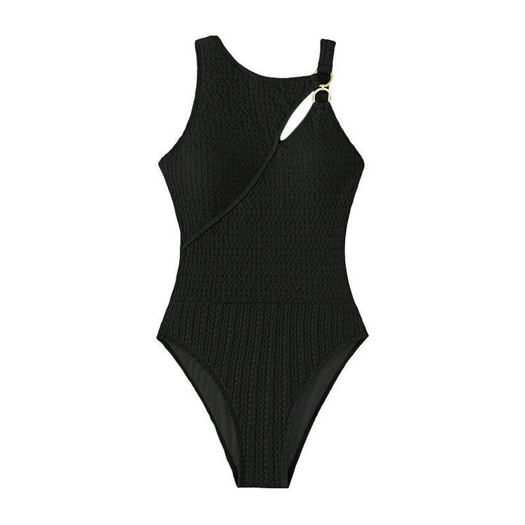 L Black Conservative One-Piece Swimsuit Women Solid Color Slim Fit Bikini Swimwear