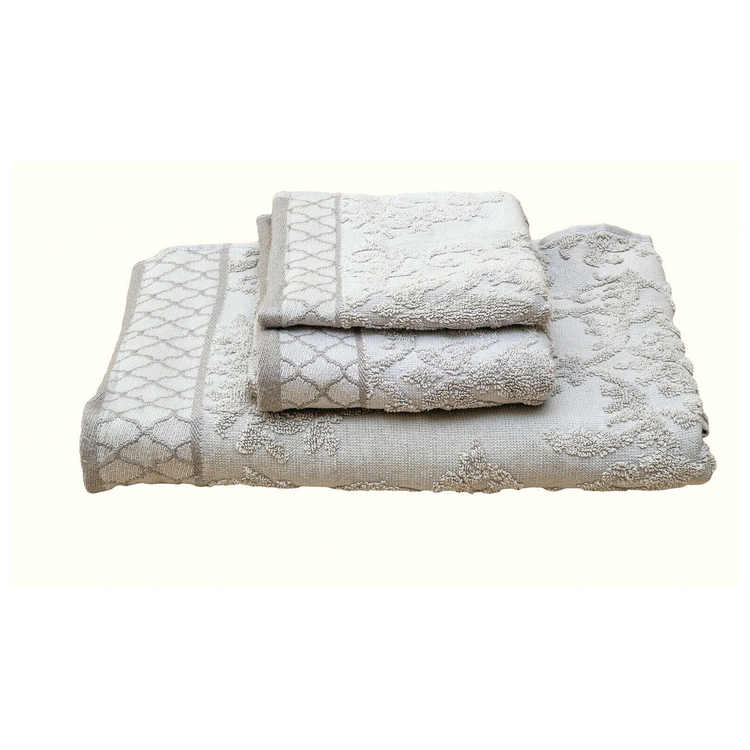 Jacquard weaving gives pattern to both sides of these towels with a Moroccan motif. Woven of organic cotton, they’re extremely absorbent and plush.