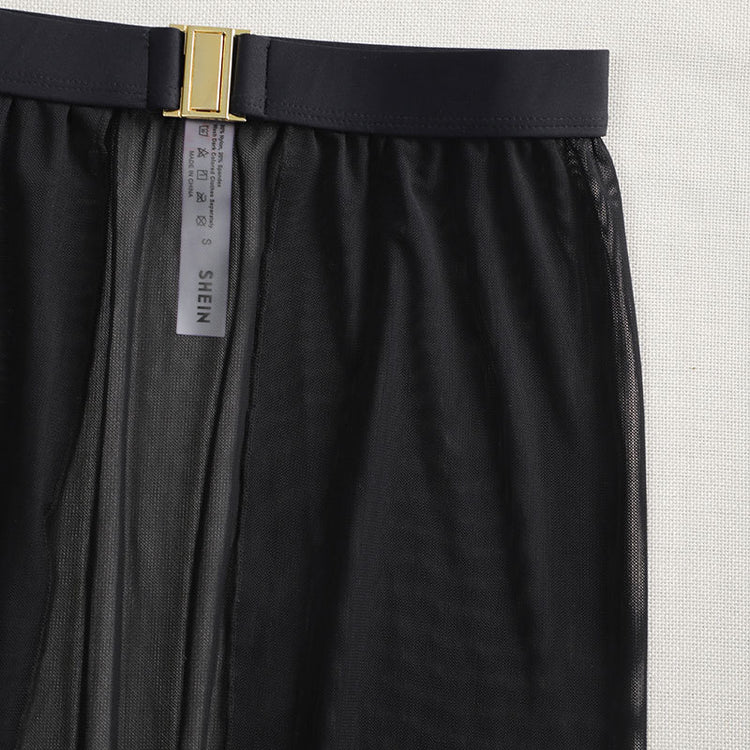 White High-Waisted White Swim Skirt with Gold Buckle Belt – Elegant Long Beach Cover-Up for Women, Ideal for Poolside and Tropical Vacations(Size: S)