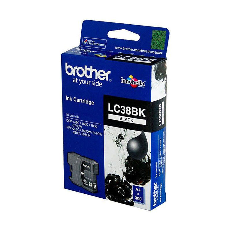 Brother LC-38BK Black Ink Cartridge - DCP-145C/165C/195C/375CW, MFC-250C/255CW/257CW/290C/295CN- up to 300 pages
