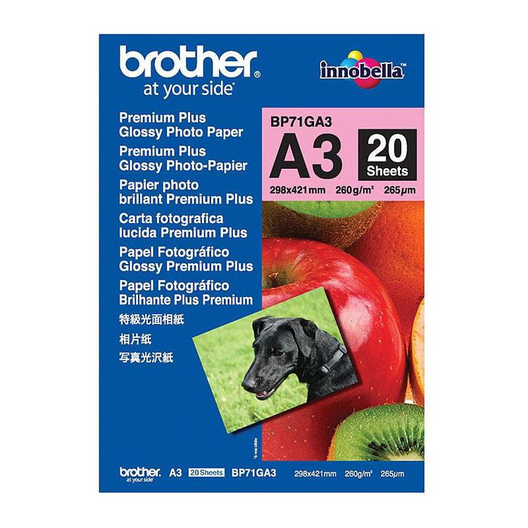 BROTHER BP71GA3 GLOSSY PAPER. MANUFACTURER CODE: BP-71GA3. COMPATIBLE PRINTERS (IF ANY) : PAGES YIELD (IF ANY): 20 SHEETS