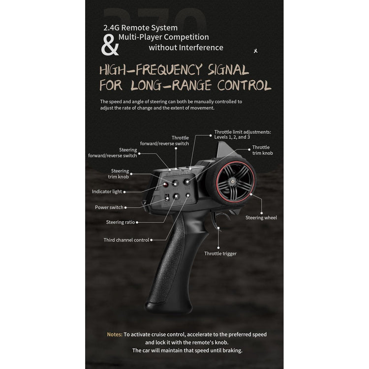 - Operating Frequency: 2.4GHz for stable and interference-free control
