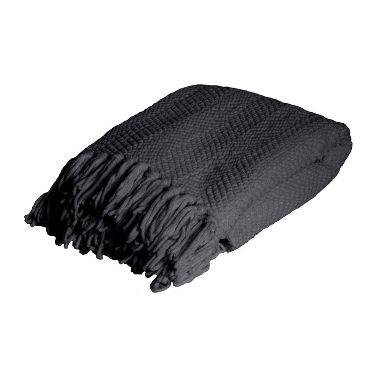Our Louie Throw Rug Charcoal 125 x 150 cm by J.elliot is incredibly soft and cosy, perfect to keep you warm this winter. The intricate chevron knitting pattern adds to the cosy and comfort that this throw brings! Paired with tassels, the Louie Throw is ready to get your homes prepared for the cold. It is made from quality and soft touch Polyester fabric.