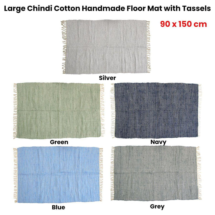 Large Chindi Cotton Handmade Floor Mat with Tassels 90 x 150 cm Silver