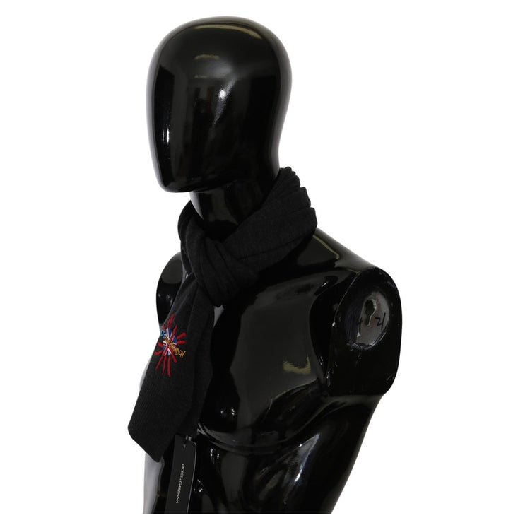 Authentic Dolce & Gabbana Gray Wool Scarf with Embroidered Details One Size Men