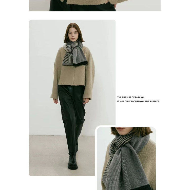 Wrap yourself in sophistication with this Luxury Striped Suede-Feel Scarf. Crafted from premium suede-like fabric, this scarf combines a soft, skin-friendly texture with a chic striped design, making it a versatile accessory for any season. Perfect for keeping warm in chilly weather or adding a stylish touch to your outfit, it's also great for draping over chairs or sharing with your pets for extra coziness.