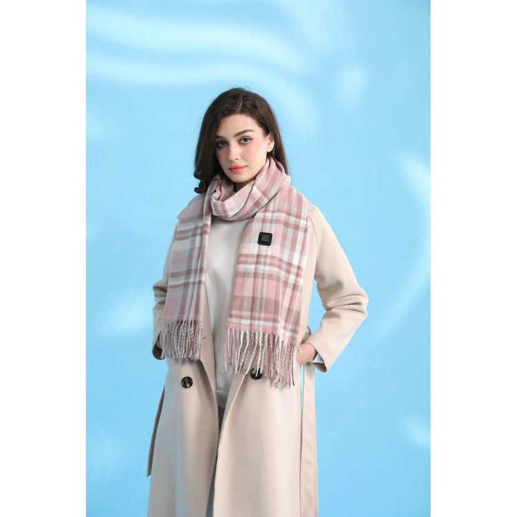 Light Pink Plaid Heated Scarf - Electric Warming Scarf, Winter Outdoor Essential (Without power bank)