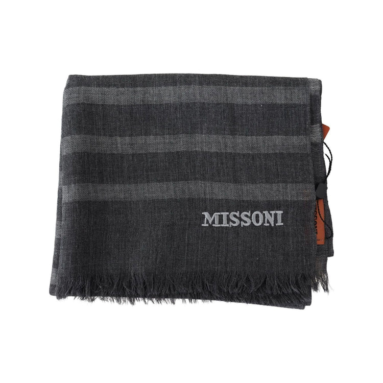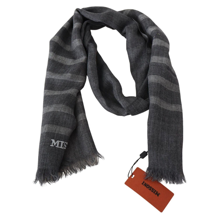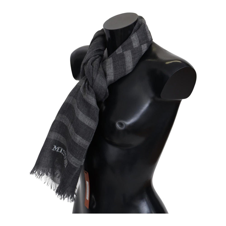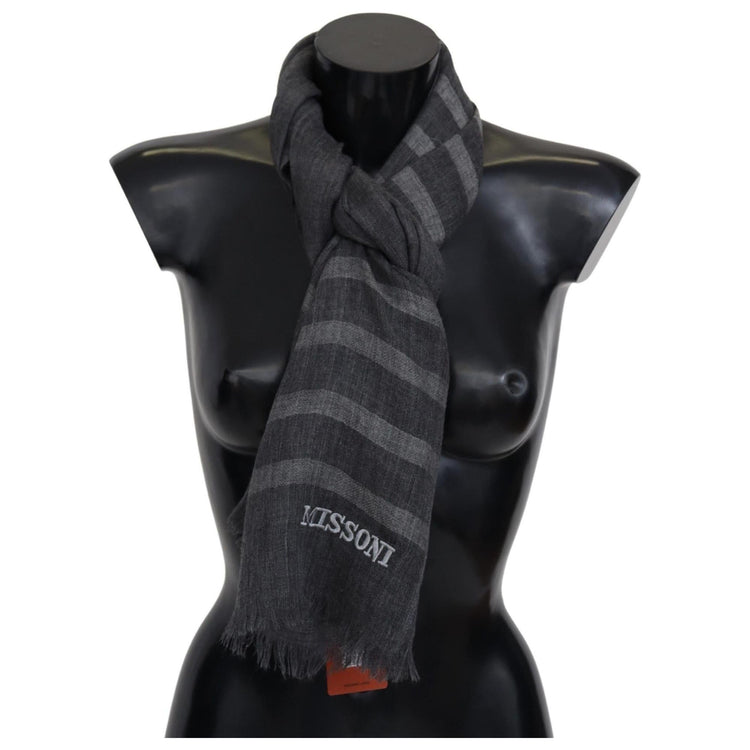 Missoni Men's Gray Striped Wool Unisex Neck Wrap Fringes Scarf - One Size