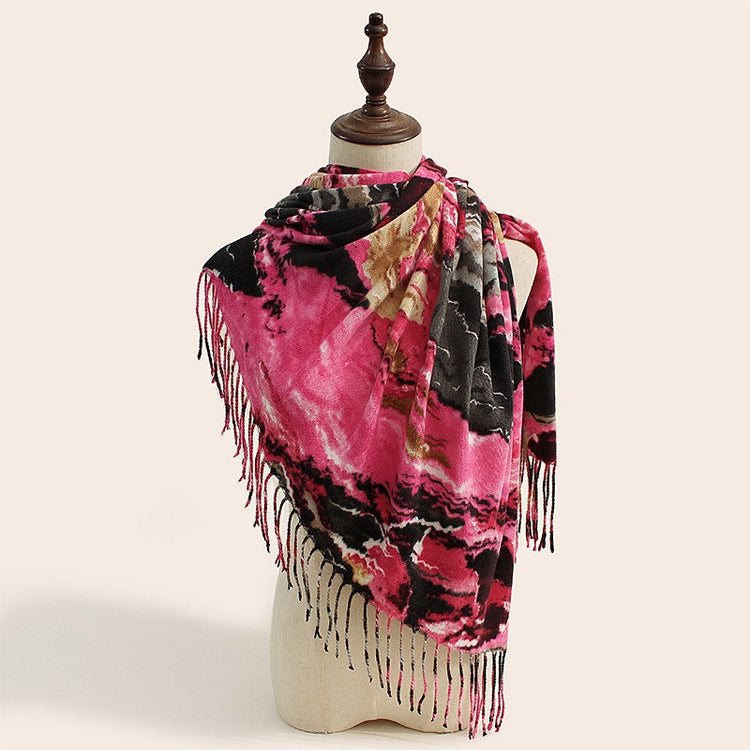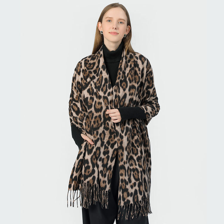Stylish Animal Print Scarf - Warm Fall/Winter Shawl with Tassels, Imitation Cashmere