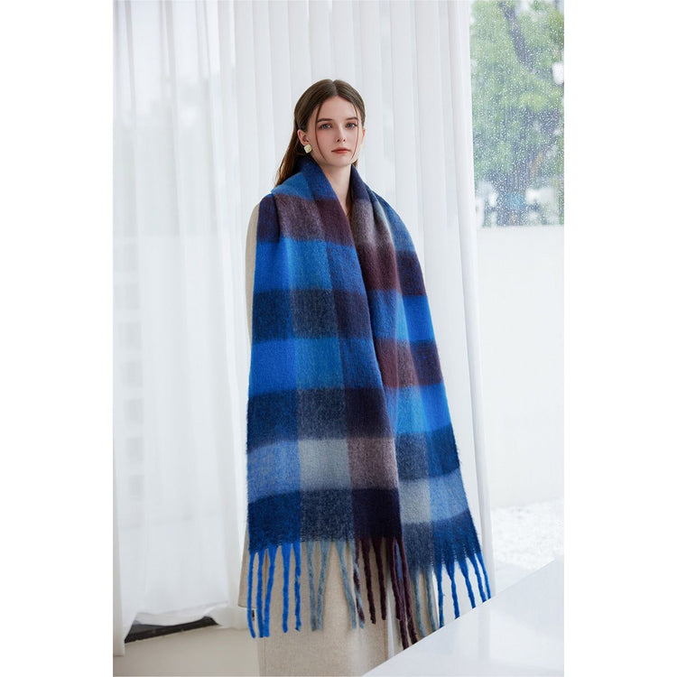 Winter Luxe Warm Oversized Scarf - Cozy Thick Plaid Wrap, European Chic Style