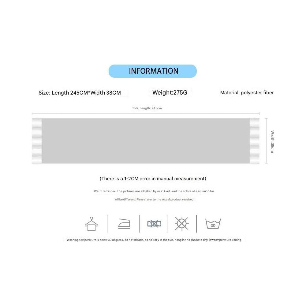 This scarf is ideal for chilly days, offering ample coverage with its generous dimensions. The fringed edges add a touch of sophistication, making it a fashionable choice for casual outings, travel, or as a cozy companion for your winter coat. Inspired by European fashion trends, this scarf blends practicality with a timeless aesthetic, ensuring you stay warm while looking effortlessly chic.