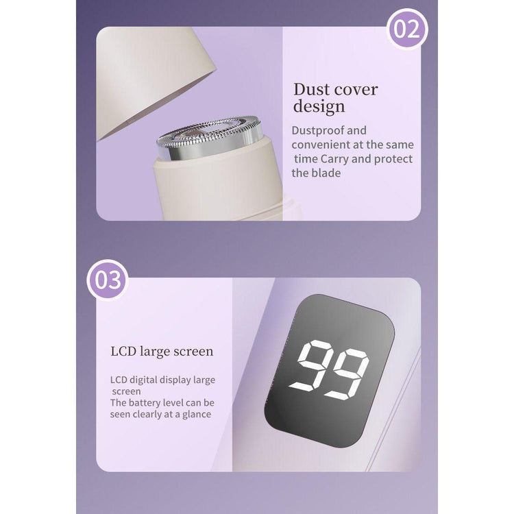 Discover the ultimate in hair removal with our Women's Multifunctional Electric Shaver, featuring a sleek gradient design and a digital display. This Type-C rechargeable hair remover offers a double-headed system with a shaving blade and short blade trimmer, perfect for private areas, underarms, and full-body use. Crafted from durable ABS + paint material, it ensures painless, smooth results every time.