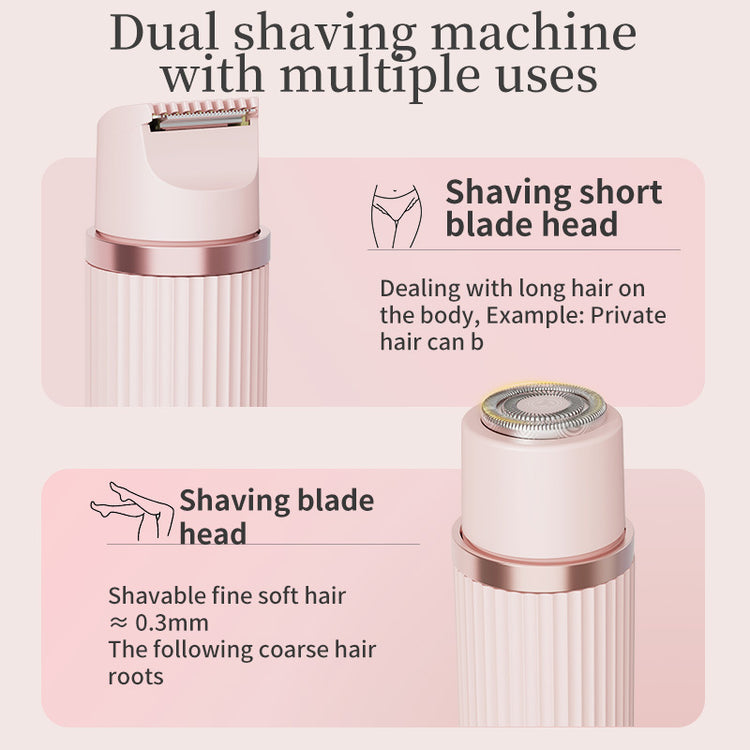 Discover the convenience of gentle and effective hair removal with this versatile dual-head electric shaver. Designed specifically for women, this rechargeable tool provides a painless and precise shave for all areas of the body, including sensitive spots like the bikini line and underarms, leaving your skin feeling silky smooth without irritation.