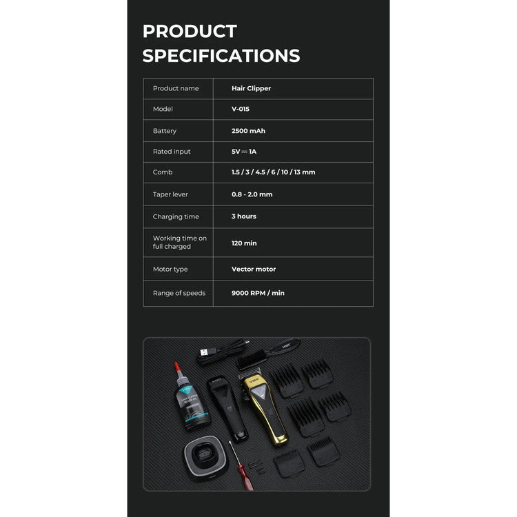 Whether you're a professional barber or need an easy-to-use home grooming tool, the VGR clipper set delivers professional results every time.