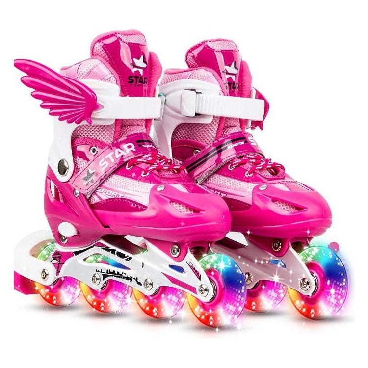 Adjustable Kids Roller Skates Set - Single Flash Wheels - Size S