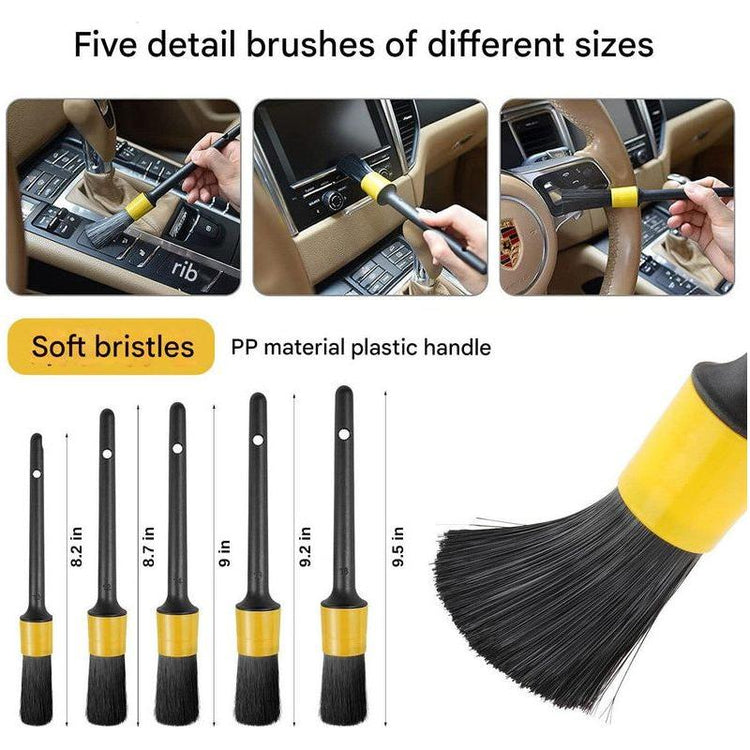 5 Different Size Detail Brushes: Perfect for reaching tight spaces, vents, dashboards, and emblems. Soft bristles ensure a scratch-free clean.