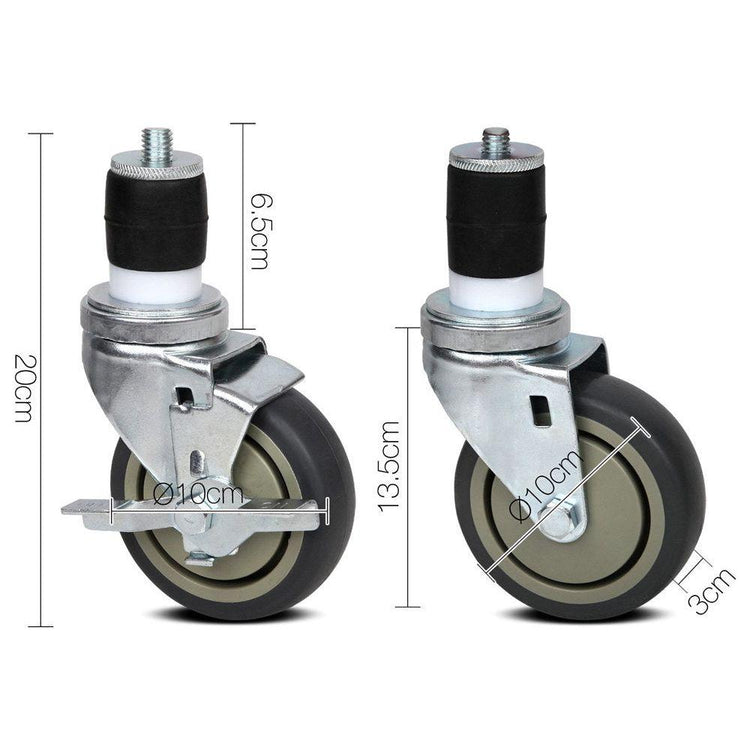 Looking to replace your current wheels? Or needing to fix on some wheels for easier moving around? Get these 4" universal castor wheels! They are capable of bearing up to 200kg and designed with a side lock brake that let you stop the wheels completely easily. Made with rubber wheels, they prevent any scratches on the tiles flooring and able to install in seconds.