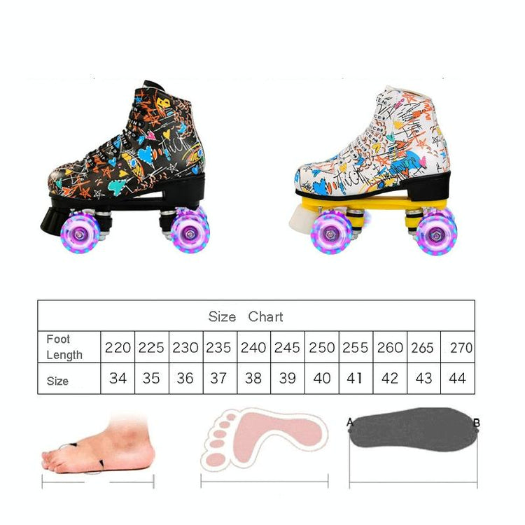 • 1 x Adult Children Graffiti Double Row Four-Wheel Roller Skating Shoes - Size 34