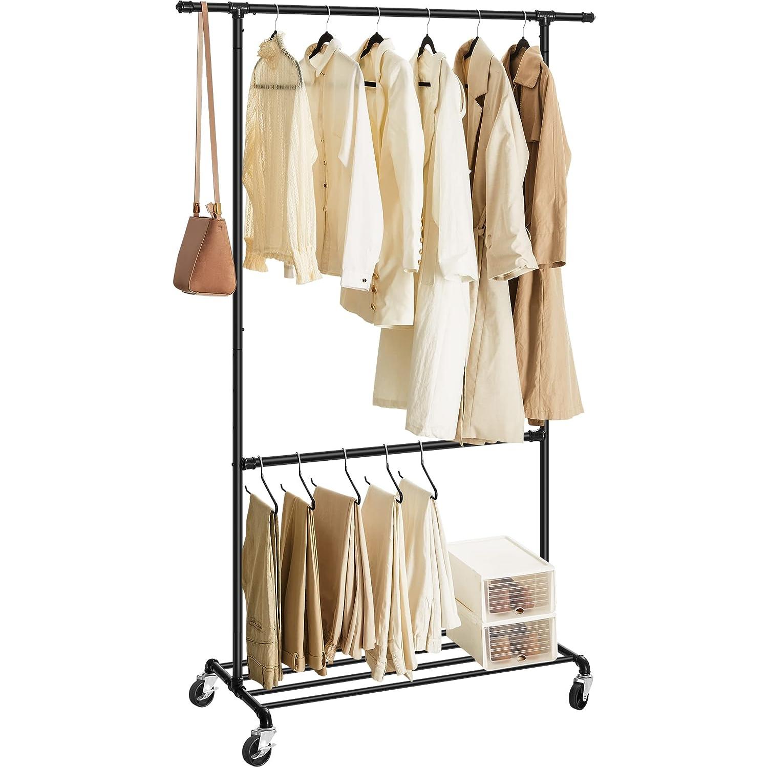- This clothing rack is the perfect solution for organizing your wardrobe. Its robust and heavy-duty design features premium metal tubes for superior strength and stability. Whether you need to hang your heaviest winter jackets or chic cocktail dresses, this clothing rack is a must-have for any closet.