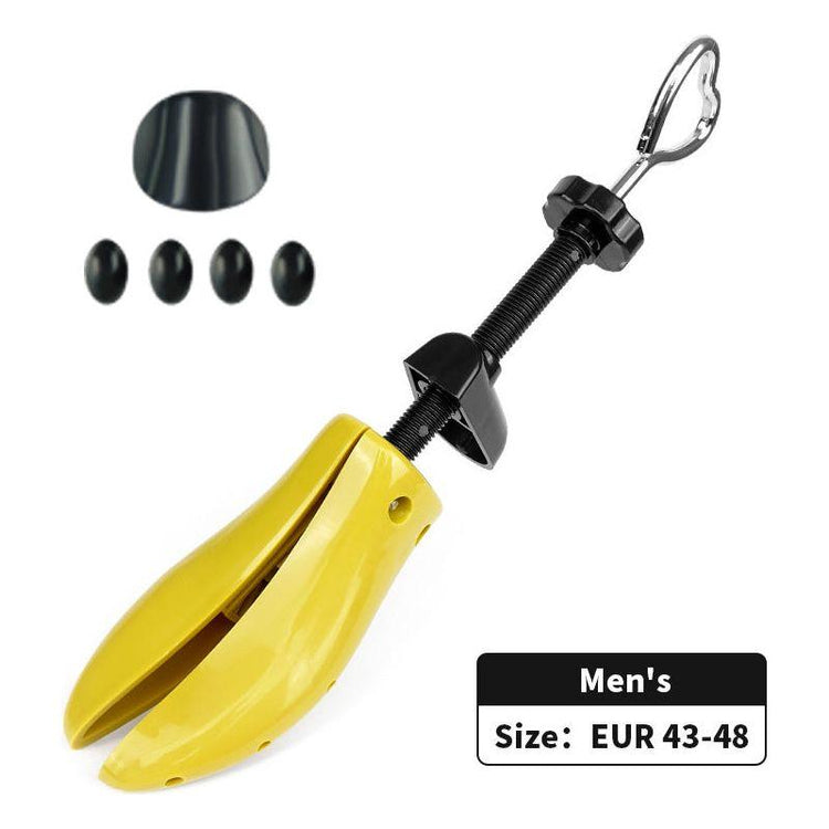 Yellow adjustable shoe stretcher for men's shoes, suitable for sizes EUR 43-48. This large-size shoe stretcher is designed to expand shoe width, reduce tightness, and relieve pressure points, ensuring a comfortable fit for your footwear. Made from durable plastic with an ergonomic design, it helps maintain the shape of your shoes and extend their life. The bright yellow color and user-friendly handle make it a stylish and practical addition to your shoe care routine.