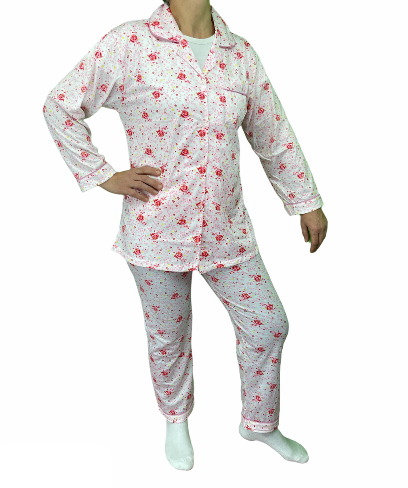 Womens PYJAMAS PJs Set Pajamas Ladies Cotton PJ Womens Long Sleeve Sleepwear - Pink - 16