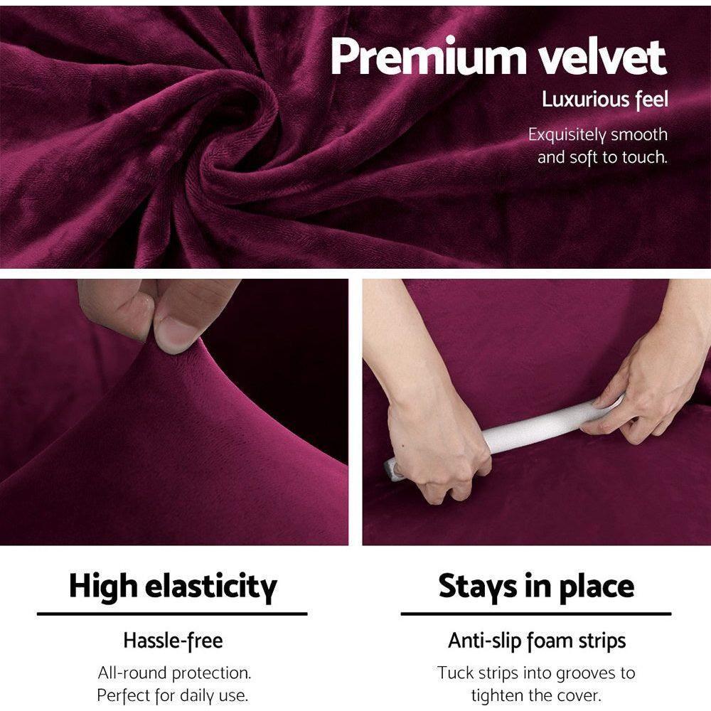 Artiss Sofa Cover Couch Covers 2 Seater Velvet Ruby Red