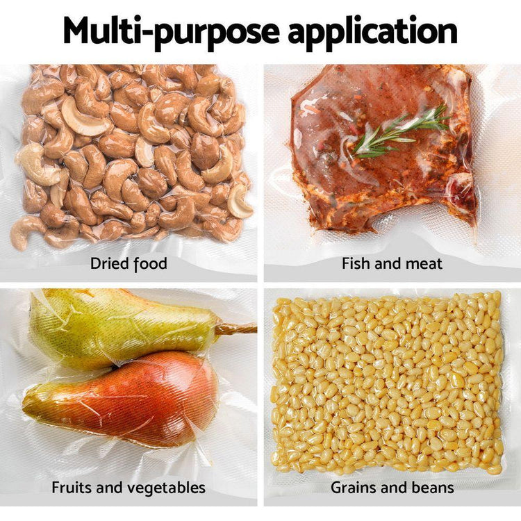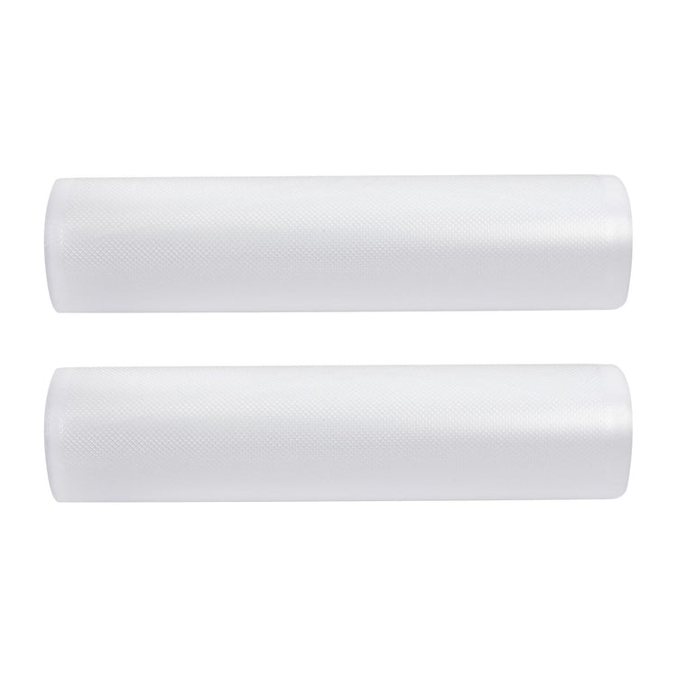 These two rolls of food vacuum sealer bags are perfect for keeping your food fresh for longer! The bags are designed to prevent spoilage by extracting all the air from inside the bag. Made from safe and odourless materials, these bags are tough and not easy to tear. The multi-layer bag design ensures maximum air extraction and is suitable for fruits, meat, cereals, vegetables, and more. The bags are compatible with most vacuum sealer machines, ensuring a strong seal and no air leakage. The diamond-shaped embossing makes them resistant to high temperatures, and they can be refrigerated and frozen. However, they cannot be heated in the microwave; only slowly heat the bags in water. The temperature range for use is -40 to 90 Celsius degrees. Reduce your food waste and keep your fridge stocked with our vacuum food sealer bags.