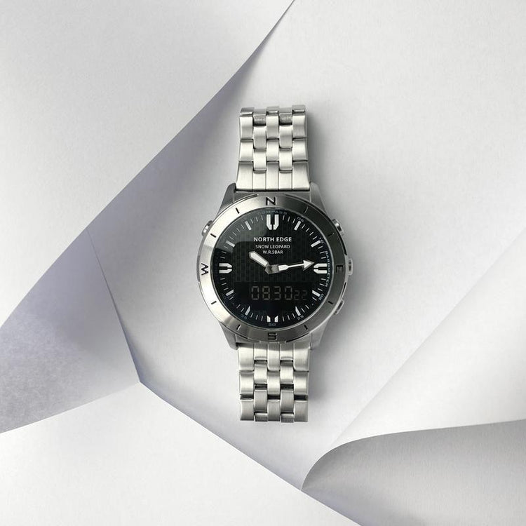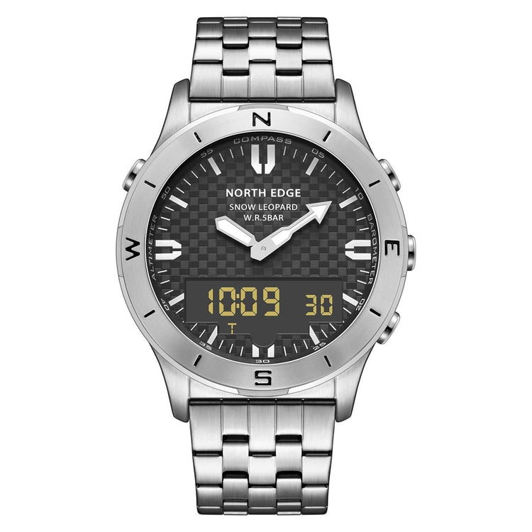 • 1 x Snow-Leopard Outdoor Waterproof Men Multifunction Stainless Steel Strap Smart Watch Silver