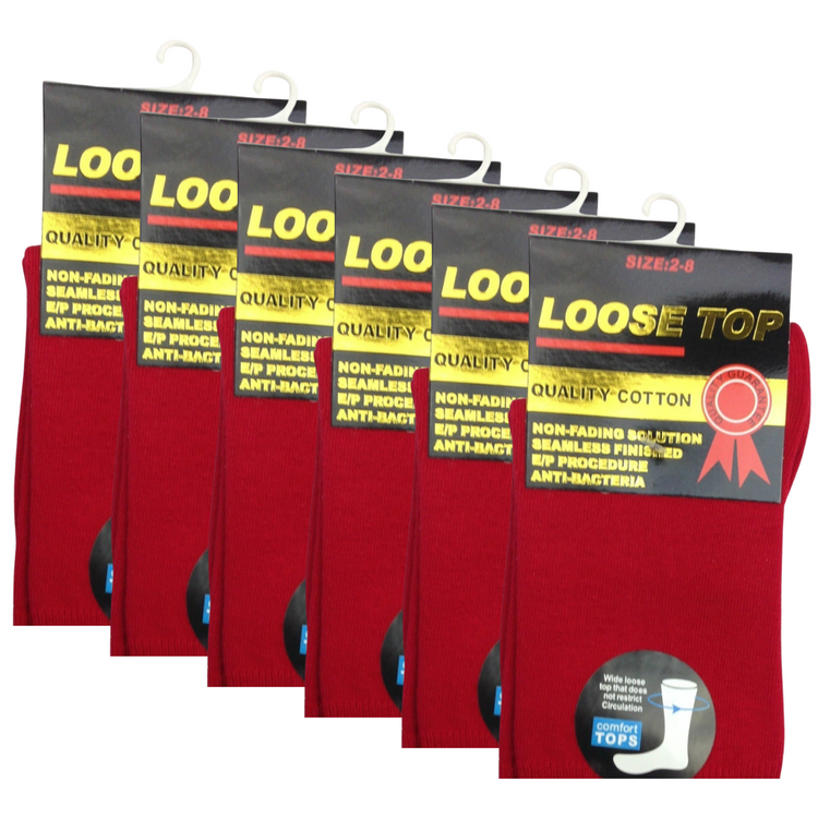 6x Pair COTTON Rich LOOSE TOP SOCKS Circulation Diabetic Comfort in Red - 2-8