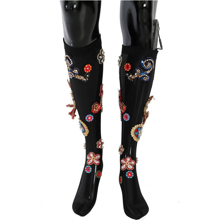 Dolce & Gabbana Black Sequined Crystal Stockings S Women