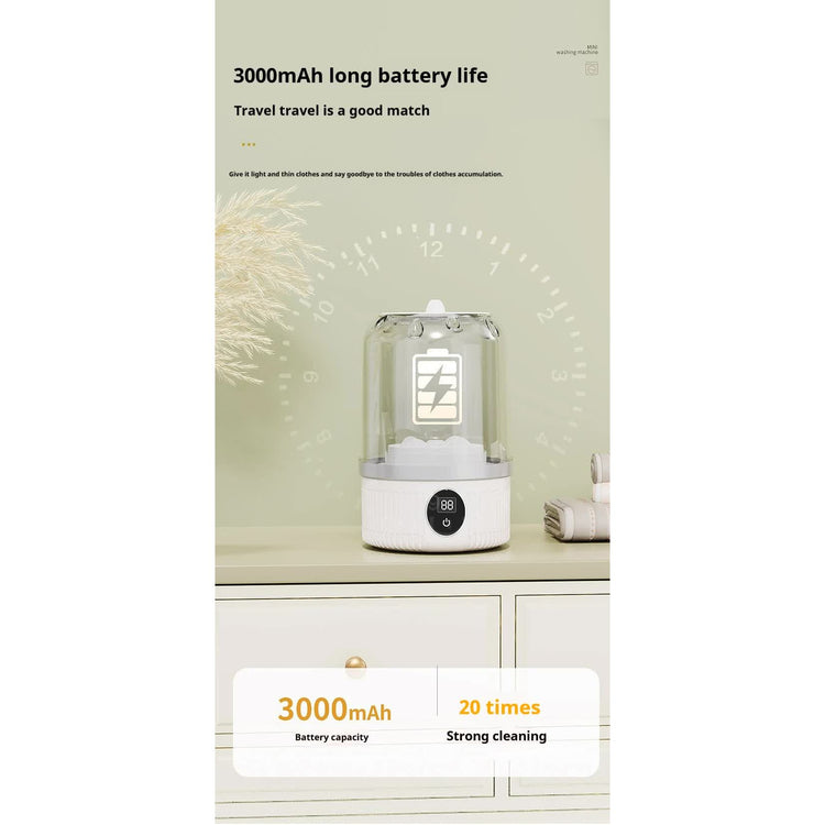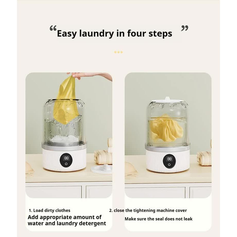 Introducing the ultimate convenience for washing delicates, socks, underwear, and other small items! This compact and portable mini washing machine is perfect for travellers, students, apartment dwellers, or anyone needing a quick and gentle wash solution without a full-sized machine. Its wireless, rechargeable design means you can use it virtually anywhere.