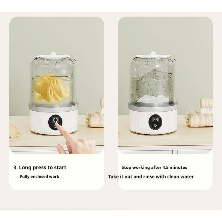 White Portable Mini Washing Machine - Rechargeable USB-C Electric Washer for Travel, Delicates & Socks