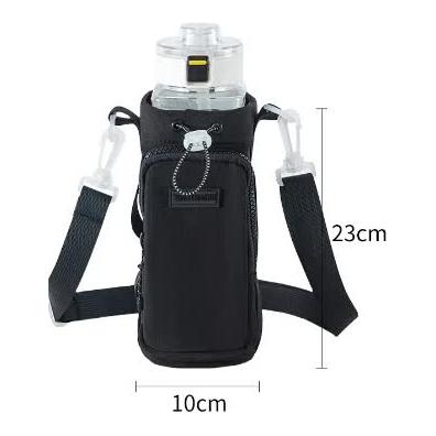 Black Portable Outdoor Water Bottle Holder Bag with Adjustable Shoulder Strap, Nylon Waterproof Material, 121g Lightweight, 23cm Height for Travel and Hiking(Water Cup Not Included)
