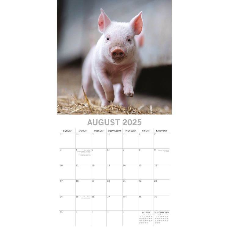 A cute range of piglet images would be a welcome addition for any home. Endearing images feature throughout.This beautifully designed, brand-new calendar is both 100% plastic-free and fully recyclable. It comes shrink-wrapped in its original packaging and features: