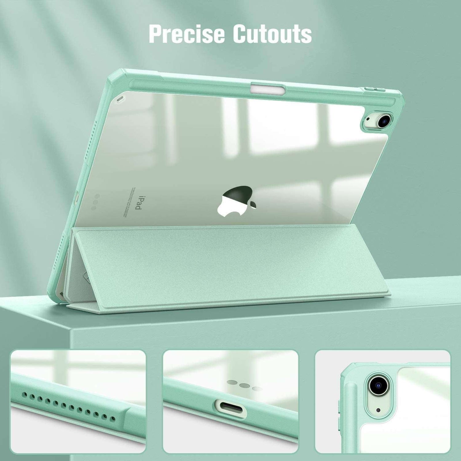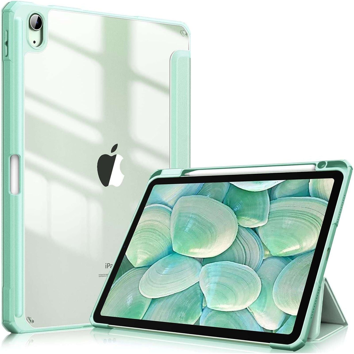 iPad 10th Case 10.9 Inch 2022 with Pencil Holder, Smart iPad Clear Case with Soft TPU Auto Wake Sleep Green