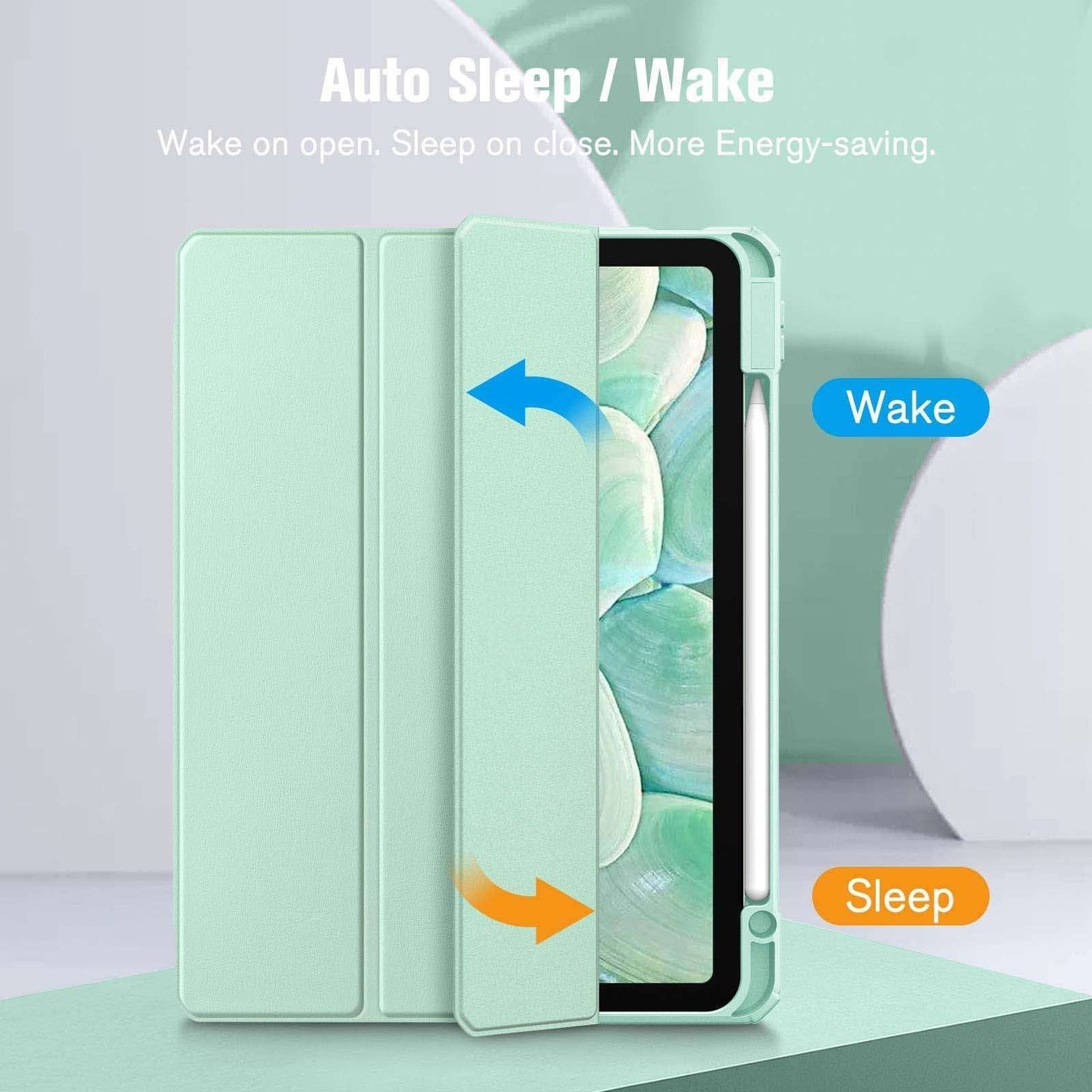 Magnetic smart cover supports auto wake /sleep function.Powerful magnet secures the case closure, easy to snap on and off.