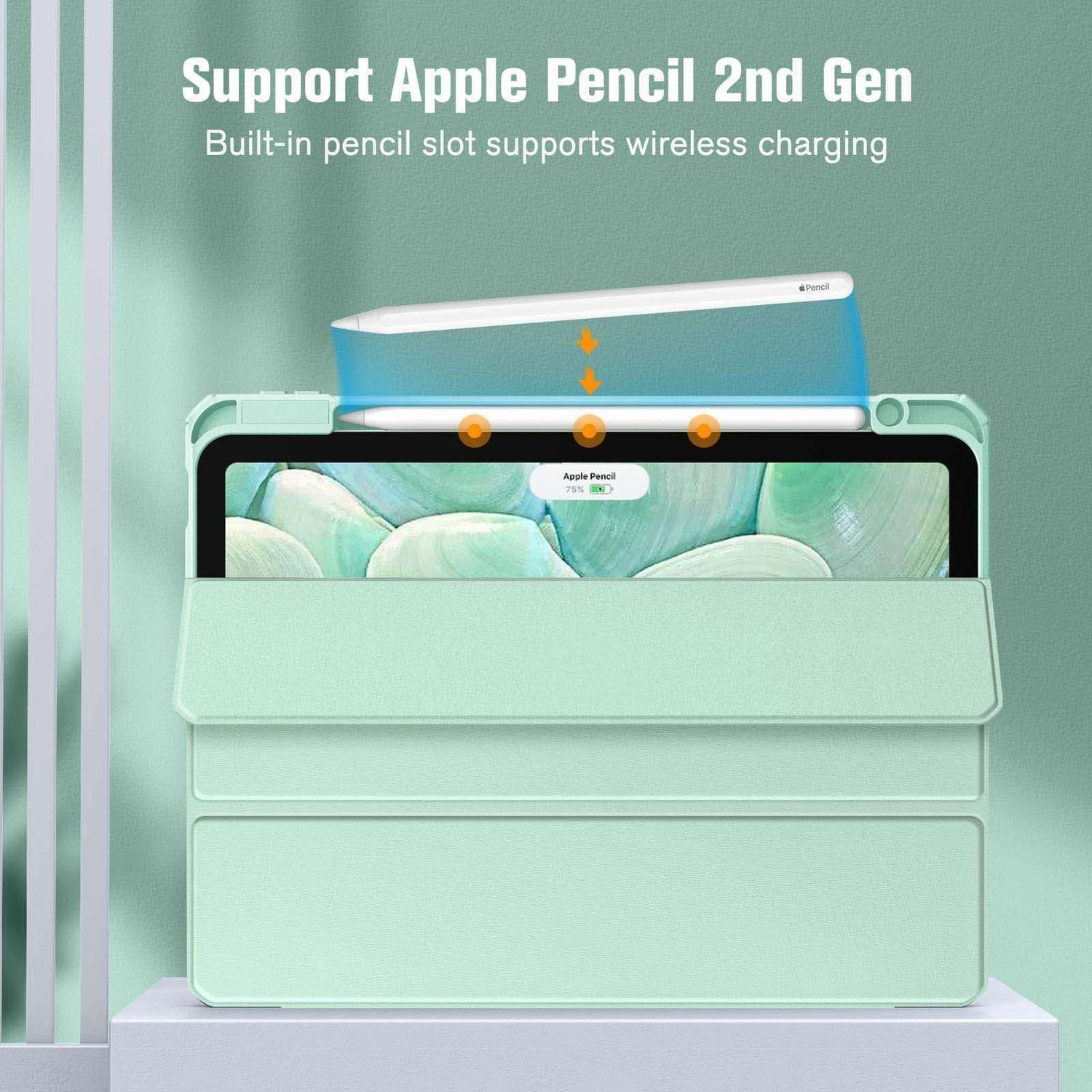 Built-in Apple Pencil holder, compatible with the Apple Pencil's magnetic attachment and charging features (Apple Pencil is NOT included).