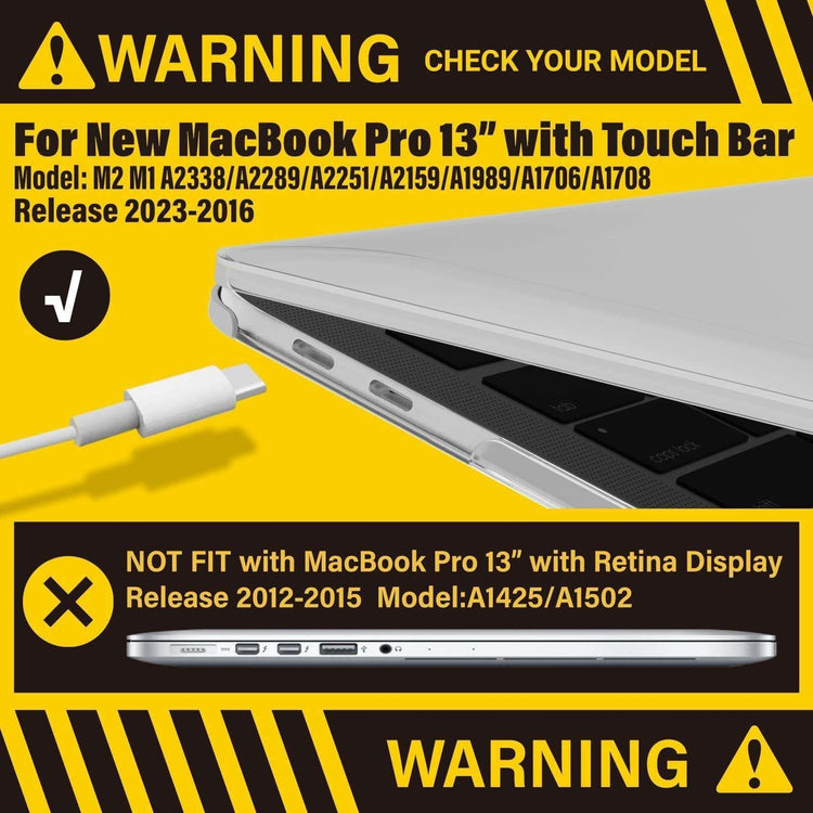 Designed to fit 2023-2016 M2 M1 MacBook Pro 13 inch models, including M2 M1 A2338/A2289/A2251/A2159/A1989/A1706/A1708.