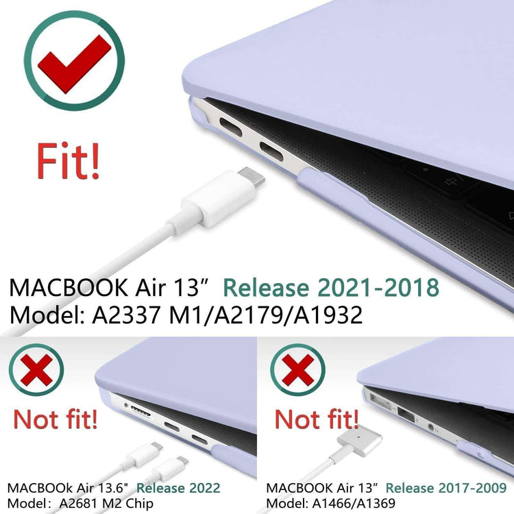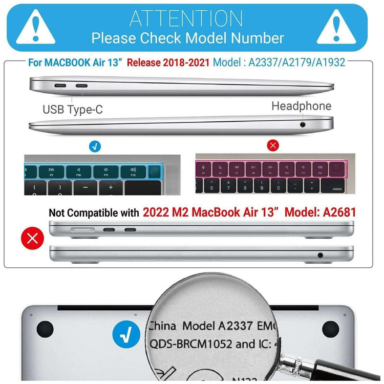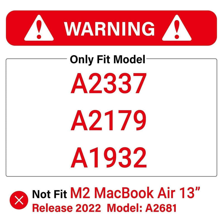Not Fit - This case is NOT compatible with 2022 M2 MacBook Air 13 Inch (Model: A2681) and Older MacBook Air 13 Released BEFORE 2018 (Models: A1466/A1369). Please kindly check the model number at the bottom of your laptop "A****"
