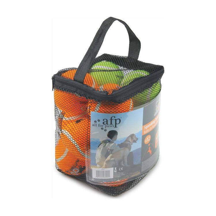 The All For Paws Squeaking Tennis Ball 12 pack is a great toy to enhance play time and exercise your dog or puppy. The squeaky feature entices fun from your pet and having 12 of the balls means play time will be never ending. The high visibility colours means collecting them once your pup is all tuckered out is a breeze.